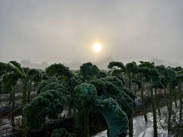 主に漬物の野菜(広島菜、高菜)と冬越しキャベツ、サラダ用カリーナケール、エゴマ、もちむぎ、トウモロコシなどを作付けしています🥬🌽