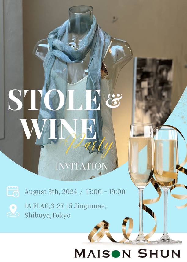 MAISON SHUNより 『STOLE&WINE Party』を開催致します。 ◆開催日時:2024年8月3日(土) 15:00〜19:00 ◆開催場所:東京都渋谷区神宮前3丁目27-15 FLAG 1A ー ー ー ー ー ー ー ー ー ー ー ー ー ー STOLE EVENT - ストールで彩るリゾートスタイル - MAISON SHUNが提案する大人のストールスタイリング。 肌で感じるシルクの心地よさと、1点ずつが違う顔を演出す る"ニードルパンチ"の魅力をお届けいたします。 Follow me! FacebooktwitterHatenaPocketCopy