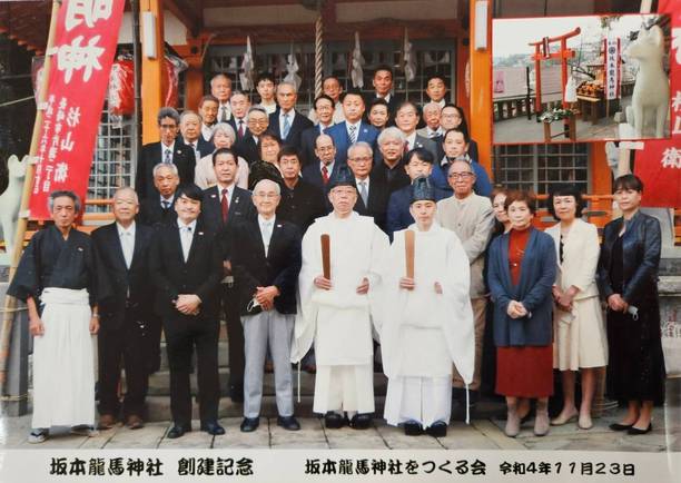 その思いは神社に龍馬だけの像を祀りたいとなり長崎の龍馬会や九州の龍馬に関する方々に相談しますが、