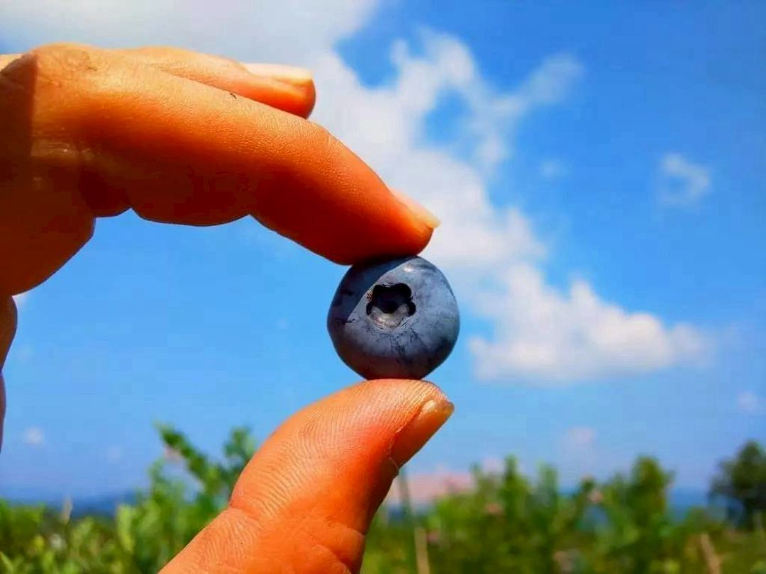 農園自慢の大きなブルーベリーをいっぱい採って一口でパクリ……モグモグ。