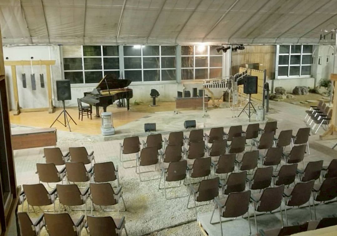 楽器の展示やコンサートのために金山の斜面を整地し建て始めた施設です(1994年竣工)
