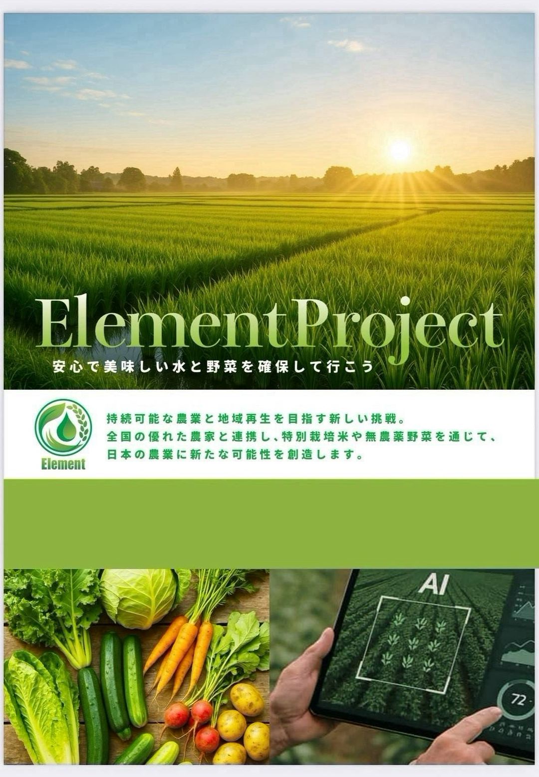 日本の農作物やお米を守り、確保していく『Element Project』を推進しております🧑🌾✨