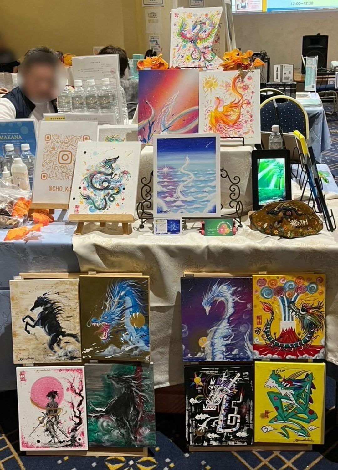 私の作品は龍の絵や風景画、馬をモチーフにしており、力強さと優しさが共存する世界観を表現しています🐉🐎✨