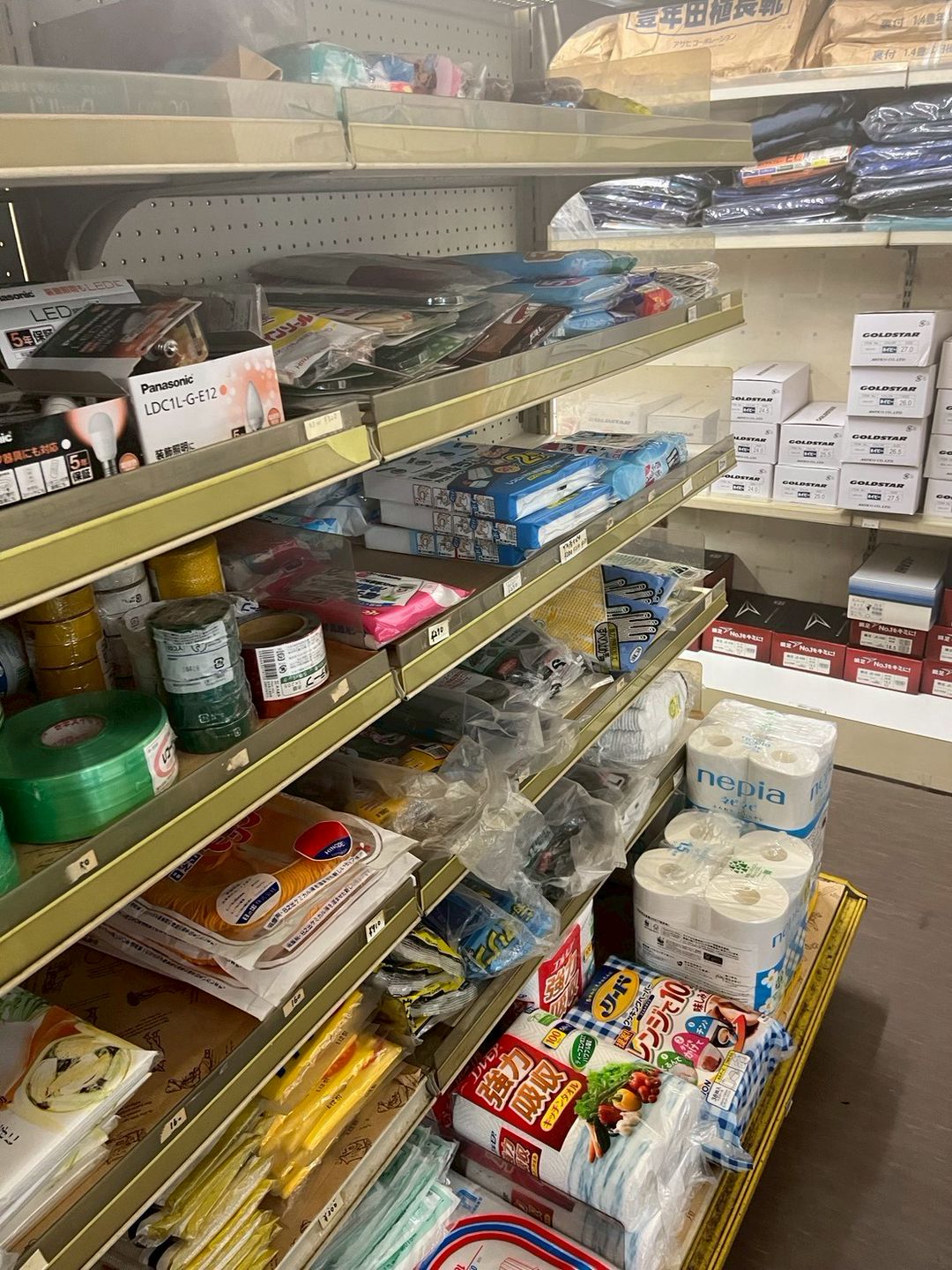 扱っている品物は食品や洋服、小中学生の制服、体操服、ズック、文房具、庭仕事道具、タネ物等、